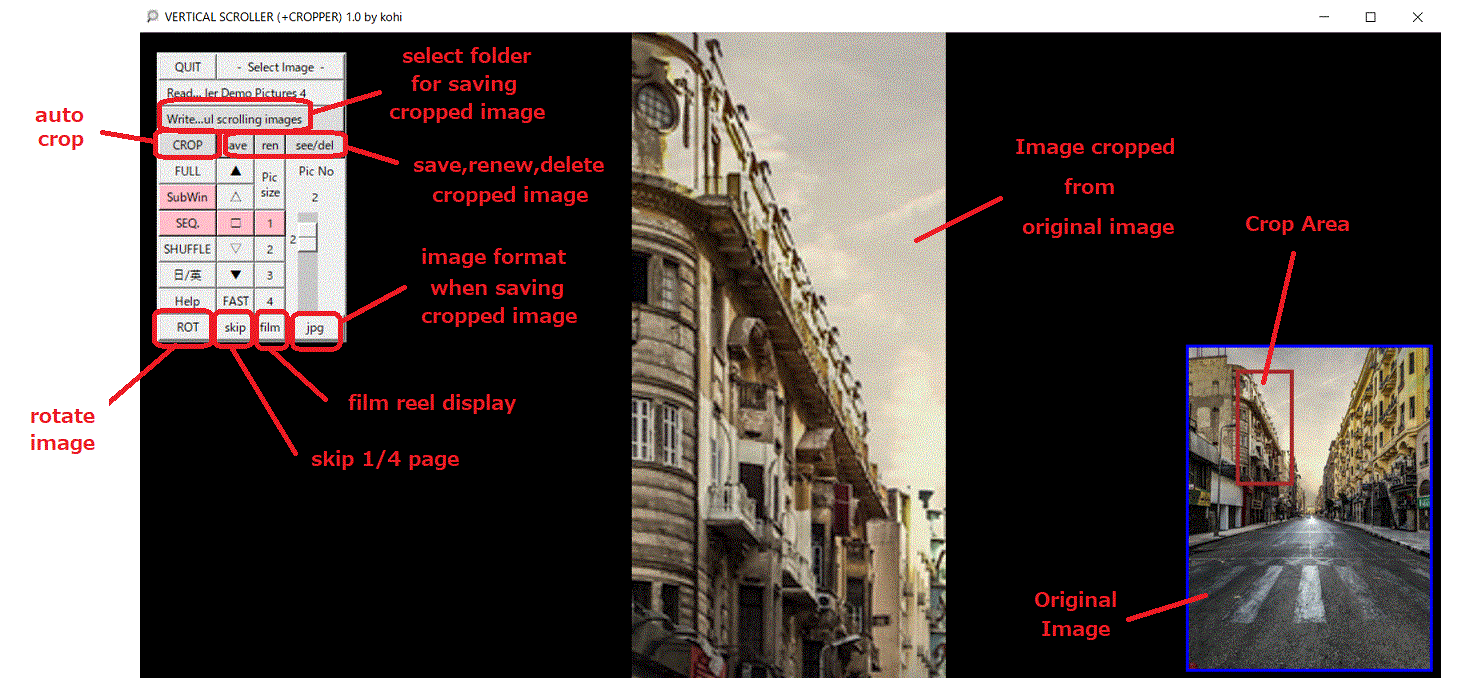 4) Auto crop function allows you to generate multiple cropped images in the vertical direction. The cropped images are aligned with pixel-by-pixel accuracy in the vertical direction.
