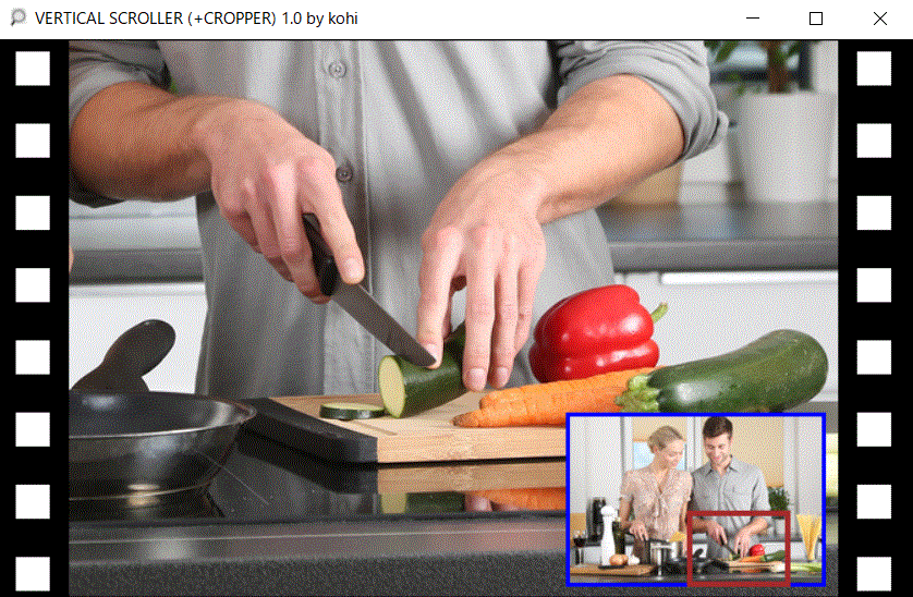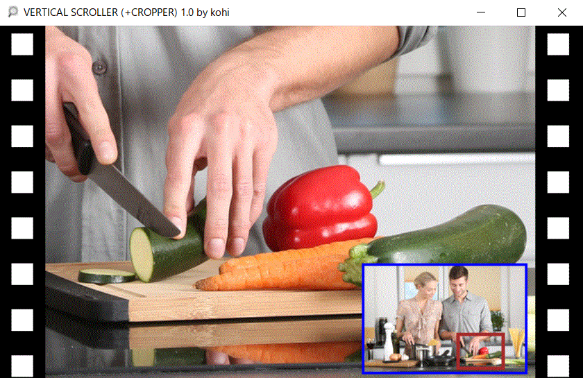 It has all the functions of the Basic Vertical Scroller + Crop function, Save cropped images, Film reel display mode etc.